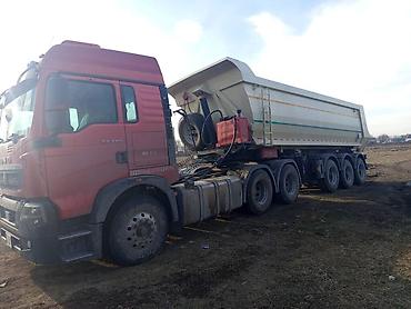 - Комплектность по фото: тягач, полуприцеп-самосвал, запасное колесо на прицепе.