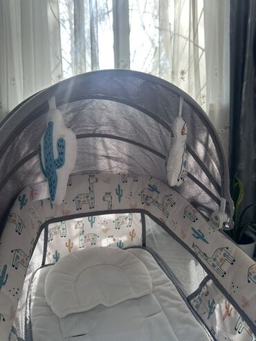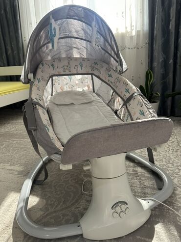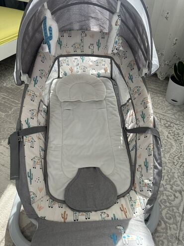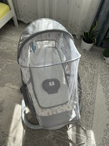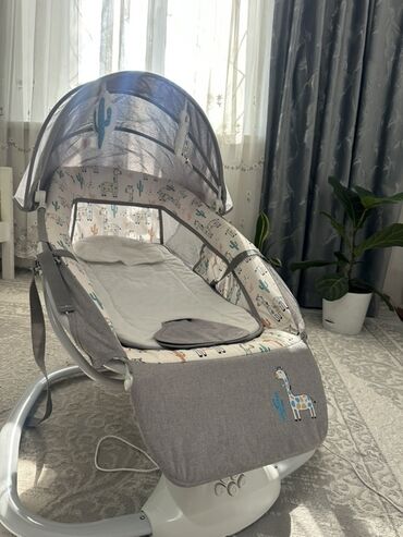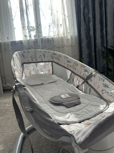 Детская прикроватная колыбель-люлька с маятниковым (электронным) укачиванием - Цвет: мятно‑зеленый с бежевым. - Каркас на металлических стойках, устойчивые ножки с колесиками и фиксаторами. - Элек...