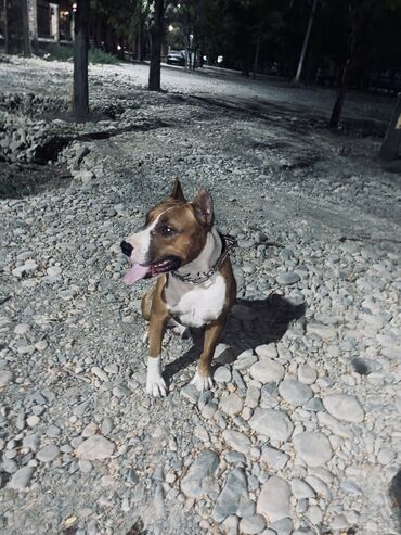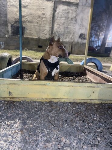 Американский питбультерьер, кобель. - Окрас: палевый/коричневый с белыми отметинами на груди и шее. - Телосложение: мощное, атлетичное; выраженная мускулатура, широкая грудь, крепкие лапы. Ватсапп ...