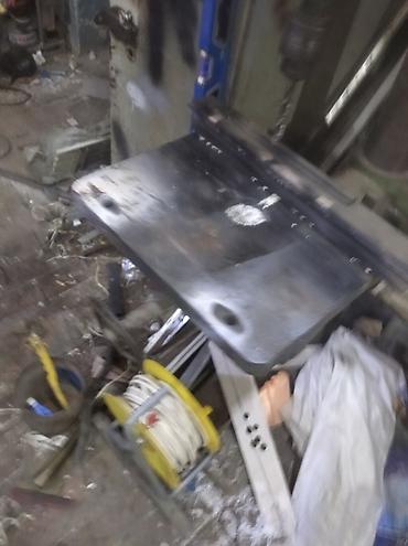 - Массивная чугунная стойка и стол, станина на колонне.