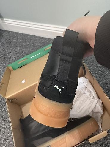- Подошва: толстая резиновая с глубоким протектором и логотипом PUMA, обеспечивает сцепление и амортизацию