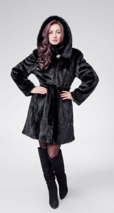 Продается норковая шуба с капюшоном, чёрный бриллиант, цельный
