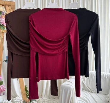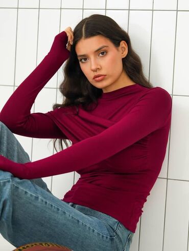 Базовая женская лонгслив-кофточка с драпировкой - Приталенный силуэт