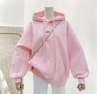 Свободное худи с капюшоном, нежно‑розовый цвет.