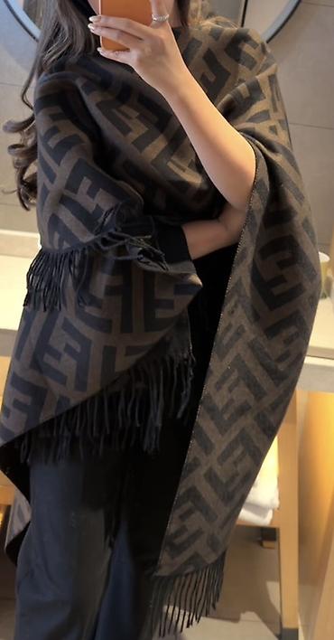 - Дизайн: крупные жаккардовые орнаменты по всему полотну, широкие однотонные бордюры, аккуратная длинная бахрома по краю