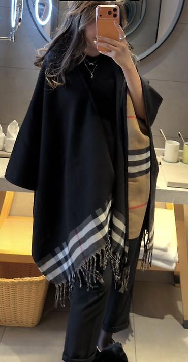 - Посадка: свободный крой, универсальный размер, удобно накидывать поверх свитеров, платьев и верхней одежды