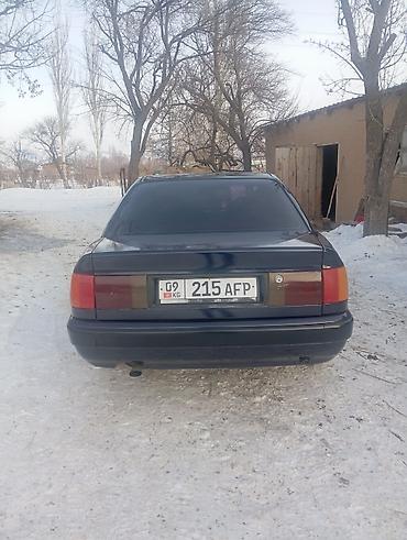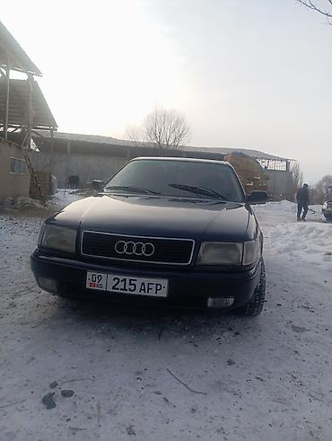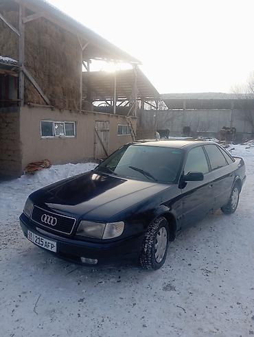 Audi 100 C4 седан, темно‑зеленый/черный цвет, 2.6 бензин (V6) — шильдик 2.6 на крышке багажника. Кузов 4‑дверный, тонировка по кругу, заводская решетка радиатора с логотипом Audi. Основные особен...