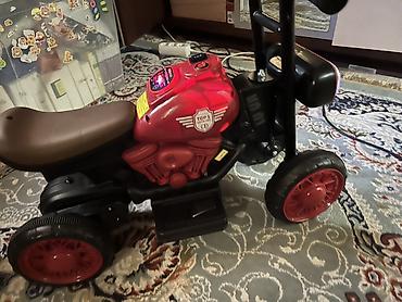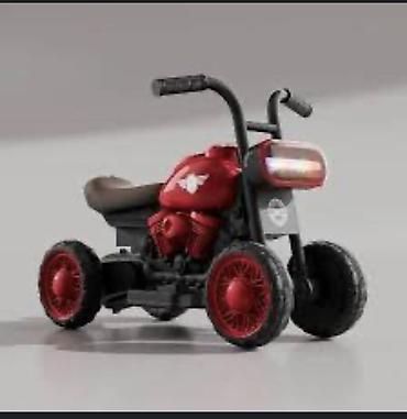 Детский электрический трицикл (электромотоцикл) с опорными задними колёсами.