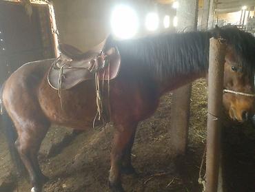 Лошадь гнедой масти с темной гривой и хвостом. Крепкое телосложение, широкая грудь, мощные круп и ноги. На фото оседлана кожаным седлом классического типа, с подпругой и стременами; на голове — веревочная недоуздка с водилом. Подходит для верховой езды и прогулок; сильная, выносливая, спокойного нрава по внешним признакам. Удобна в содержании в стойле. Возможна работа в упряжи при соответствующей амуниции.