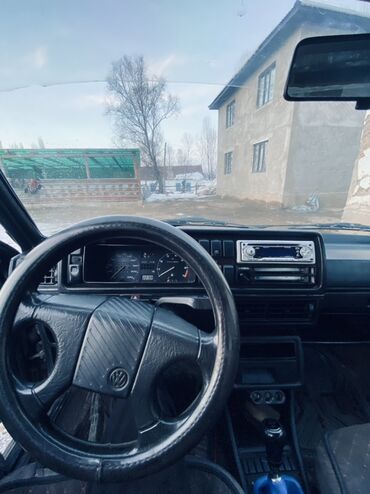 Volkswagen Jetta (седан, ориентировочно конец 1980‑х – начало 1990‑х). Темно‑синий/черный цвет кузова. Киргизская регистрация (номер на фото). Версия с шильдиком “Pacific”ЖАЗГЫЛА