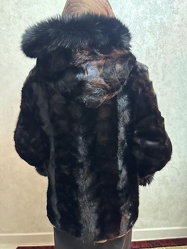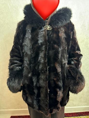 Шуба из натурального меха норки, темно-шоколадный оттенок с