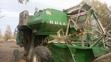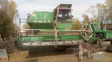 Зерноуборочный комбайн с жаткой Описание: - Самоходный зерноуборочный комбайн советского/российского типа (серия Нива/Колос), на колесном ходу. - Полная компоновка: кабина оператора с остеклением,...