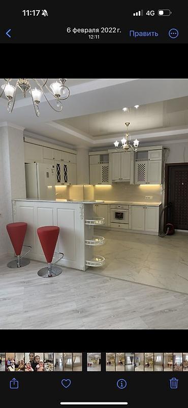 - Просторная кухня в классическом стиле: П‑образный гарнитур с большим количеством шкафов, встроенная техника (духовой шкаф, варочная поверхность), накладная подсветка фартука, высокий холодильник.
