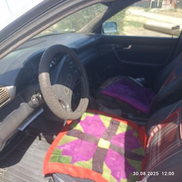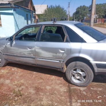 Audi 100 C4, седан, серебристый цвет с черным капотом. Пятидверный кузов, литые диски, рейлинги/багажник на крыше. Салон темный, передние сиденья с накидками, рулевое колесо с оплеткой, коврики-«ванночки». Электростеклоподъемники, центральная консоль с классической аудиовской панелью приборов, кондиционерная панель, отсеки для хранения. Задние сиденья со складыванием спинки, просторный салон.