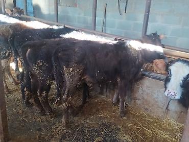 Быки на откорме. - Группа мясного направления, разный окрас (чёрные, бурые, пёстрые), ушные бирки, содержатся в крытом помещении на привязи/кормовом фронте. - Рацион: сено/сенаж, видно стабильную ...
