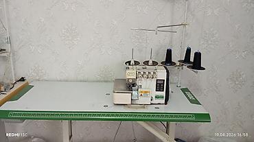 Обе машины смонтированы на отдельных столах с металлическими станинами и рулеткой-разметкой по кромке столешниц; стойки для катушек и направители нитей установлены. Подходят для пошива изделий из трикотажа (оверлок) и большинства тканей средней толщины (прямая строчка), для сборки изделий, обметки срезов, стачивания и отделочных операций.