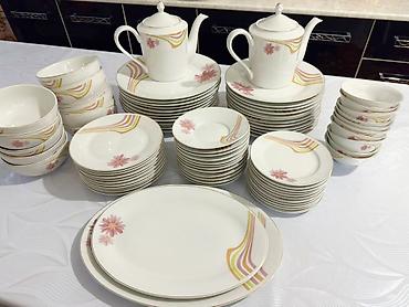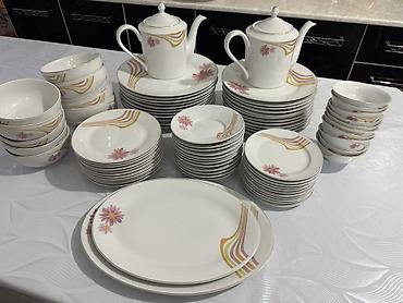 Фарфоровый столовый и чайный сервиз с цветочным орнаментом