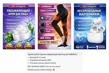 Дизайн карточек товара и инфографики для маркетплейсов Что делаю: - Разрабатываю продающие обложки и инфографику для Wildberries, Ozon, Яндекс Маркета. - Под каждый товар создаю визуальную концепц...