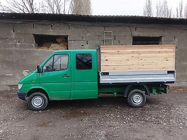 Продаётся бортовой грузовик Mercedes‑Benz Sprinter (двухрядная кабина, зелёный цвет) с высокой деревянной надставкой кузова.