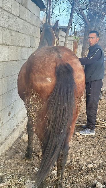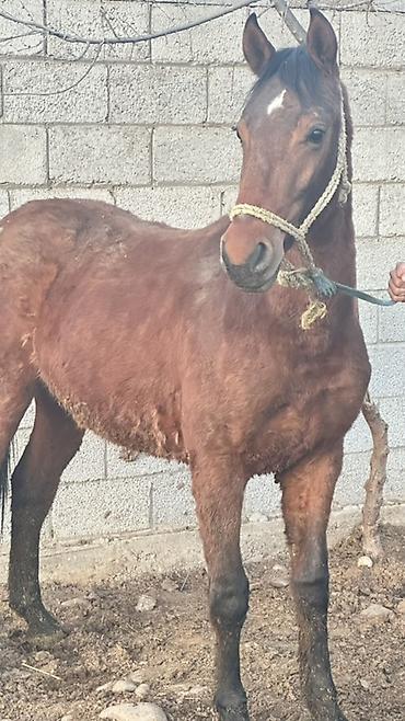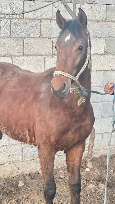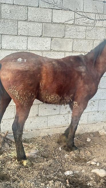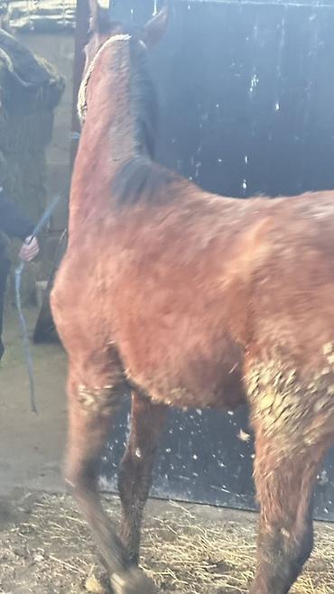 Лошадь, гнедая масть с небольшой белой отметиной на лбу. На фото — молодое животное крепкой конституции, с пропорциональным корпусом и выразительной головой. Хвост и грива темные, конечности с хорошими суставами, копыта крупные. На лошади веревочная недоуздка, привыкла к содержанию в стойле и на выгуле, спокойно стоит на привязи и ведется в поводу. Подходит для дальнейшей выездки и обучения под верх, а также для хозяйственных работ или прогулок. Хороший вариант для тех, кто ищет перспективного коня для работы и общения.2 месеца на откорме