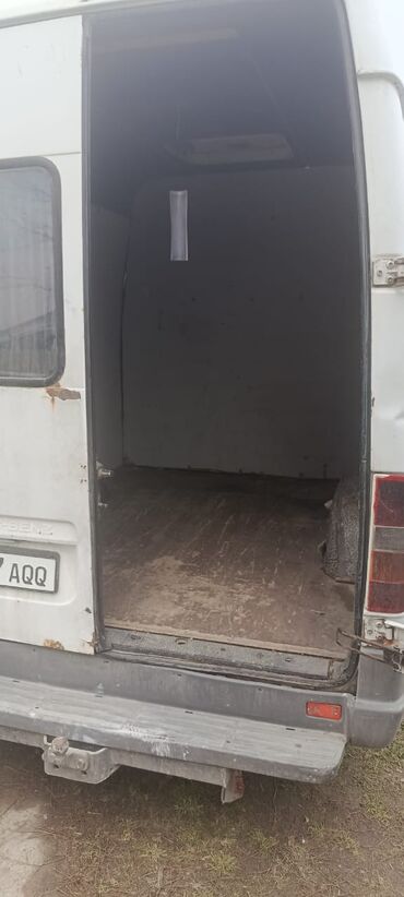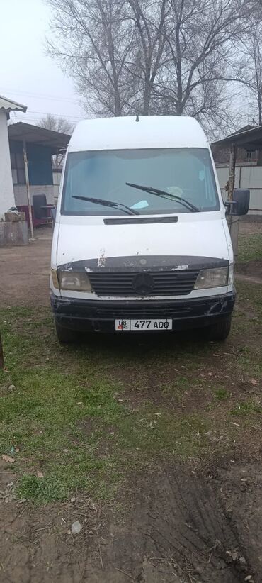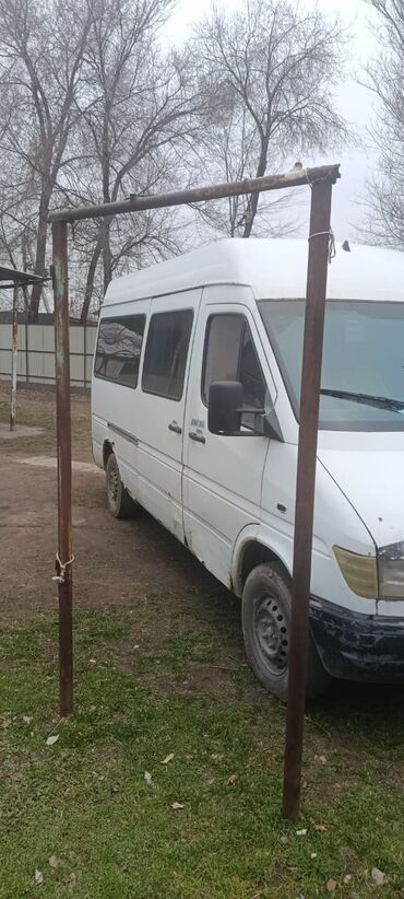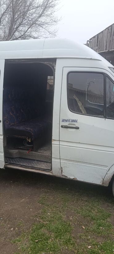 Mercedes-Benz Sprinter (первое поколение, высокий кузов). Белый минивэн/фургон с длинной базой, пассажирскими боковыми окнами и распашными задними дверями. Номерные знаки KG (08 регион), на корме эмблема Sprinter.