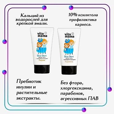 3) Детская зубная паста Vita Mama Dino Dent (персик/карамель)