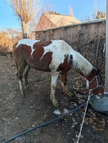 Пегая лошадь (мастернская масть: рыже-белая), предположительно кобыла.