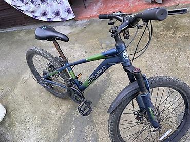 Горный велосипед Skillmax (детский/подростковый) - Рама: стальная, размер ориентировочно 12–13", геометрия MTB - Колеса: 20" с внедорожными покрышками - Тормоза: дисковые механические спереди и сз...