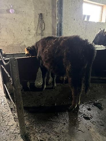 Бычок черного окраса - Предположительно мясного направления, плотное телосложение, широкий корпус. - Компактные рога, густая шерсть. - Содержится в отдельном стойле, на сене. - Спокойный характер,...