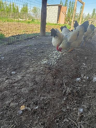 Куры-несушки (порода Адлер/ситцевыми признаками, светлое оперение с тёмными хвостами)