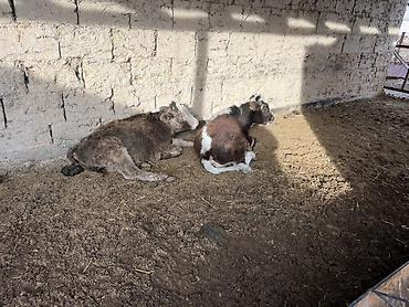 Телята (молодняк КРС) Описание: - На фото — несколько телят мясо‑молочного направления. - Окрас: рыжий и рыже‑пёстрый с белой головой, есть тёмно‑бурый. - Возраст — молодые, на пастбище/подворье, ...