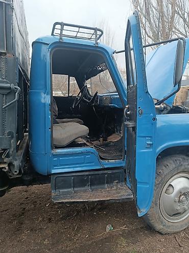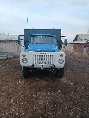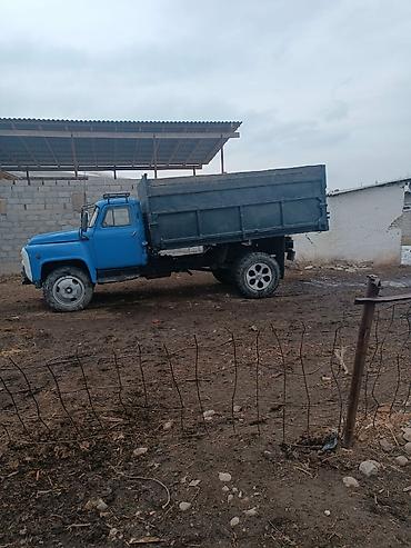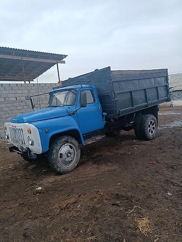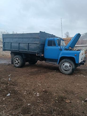 Грузовой самосвал ГАЗ (серия 53/3307), с высоким металлическим бортовым кузовом и гидроподъёмником.