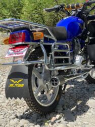 Мотоцикл Jinma (бренд на табличках «Jelmaia/Jinma») с доработками для поездок по городу и проселку. Основные особенности: - Высокое ветровое стекло турингового типа с регулируемыми креплениями. - ...