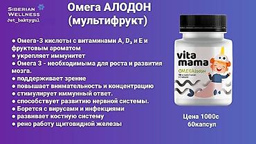 Детская добавка Vita Mama OMEGAlodon — комплекс омега‑3 кислот с витаминами A, E, D3. Подходит детям 3+. Формат: капсулы, во флаконе 60 капсул. Вкусовая форма: мультифрукт. Особенности и польза: -...