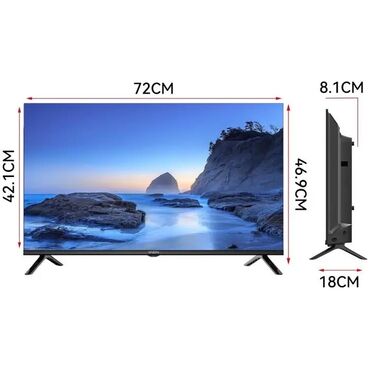 - Габариты экрана: 72 × 42,1 см; глубина корпуса: 8,1 см; высота с ножками: 46,9 см; расстояние ножек: 18 см