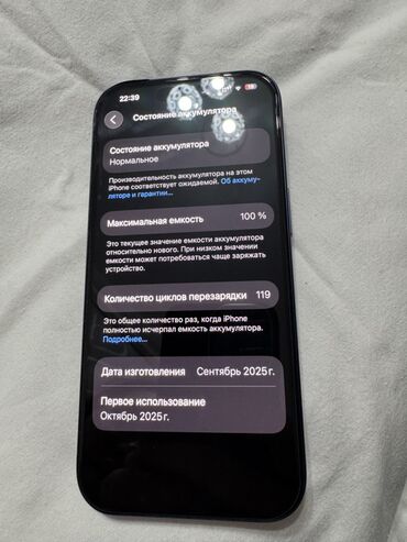 IPhone 17 Pro, 256 ГБ, цвет светлый (серебристый). Экран с Dynamic Island Характеристики и состояние по меню устройства: - Емкость памяти: 256 ГБ - Ограниченная гарантия до 22.12.2026 - Батарея: м...
