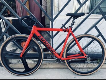 Трековый/фикс-велосипед с аэродинамической рамой - Рама: алюминиевая/карбоновая геометрия трек/фикс, горизонтальные дропауты - Привод: синглспид/фиксед (одна звезда спереди и сзади), цепной привод...