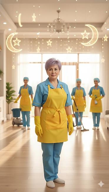 Шаар жана Айыл жергесинде уйлорду квартираларды мейманкана кафе ресторандарды генеральная жана после ремонттон кийинки уйлорду тазалайбыз. Кошумча ,Терезелерди жууйбуз , холодильник духовка ,микро...