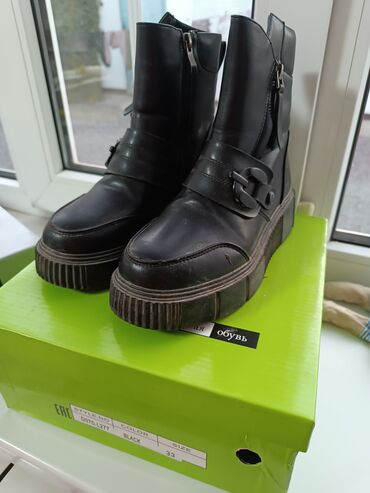Женские черные ботинки/полусапоги на массивной подошве. - Материал верха: черная кожа (визуально гладкая). - Подошва: высокая, рельефная, с глубоким протектором для устойчивости. - Застежки: молни...