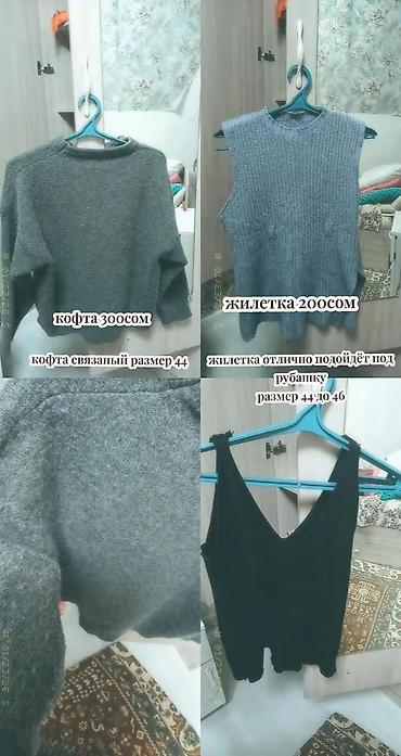 Продаю много разной женской одежды размер 48-52 цены разные от 100 до 500 сом 1) кардиган 600 сом 4) 100 сом 5) костюм мики 400 сом 6) 600 сом 7) the north face -500 сом 8) с бусинками- 25...