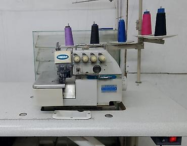 Промышленные оверлоки SHUNFA на рабочих столах - Полнокомплектные рабочие места: столы с линейкой-разметкой, педали, стойки с нитедержателями на несколько катушек. - Машины 3/4/5-ниточного класса ...