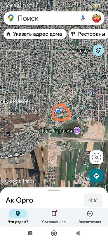 Участок 5- соток г.Бишкек мкр.В.Орок Ленинский район Имеется Времянка новый недостроенный и сад Красный книга все документы центральная канализация водопровод газ.