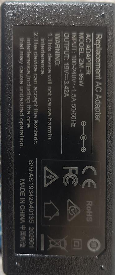 В комплекте: адаптер питания с кабелем постоянного тока и фиксатором на липучке. Подходит для устройств, требующих параметров 19 В / 3.42 А и совместимого круглого штекера. штекер формата 4.00м/1.35м, причина продажи мне не подошла, абсолютно новый, кабель в подарок, хочу на обмен такой же но на 45 ватт