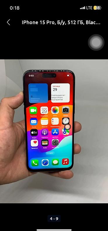 IPhone 15 Pro, Б/у, 512 ГБ, Черный, Коробка, 100 %