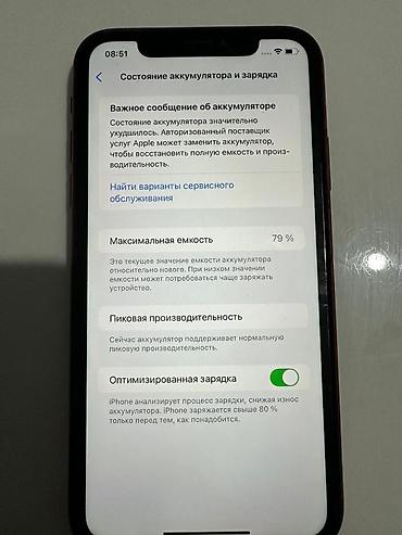 - Аккумулятор: максимальная ёмкость по настройкам — 79%; включена «Оптимизированная зарядка»