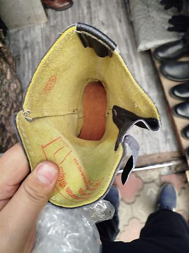 Берцы/сапоги рабочие кожаные, без шнуровки, с высоким голенищем.