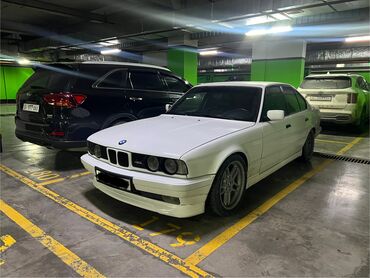 BMW 5 Series (E34) седан, белый цвет. Основные особенности: - Классический кузов E34 с фирменной решёткой и “ангельскими” круглыми фарами - Аэродинамический передний и задний бамперы, спойлер на к...