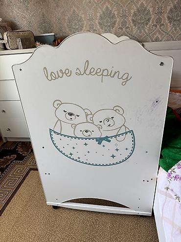 Кроватка детская с маятником, б/у, с регулятором высоты, состояние отличное, матрас в идеальном состоянии. Цена 6000 сом, торг уместен.