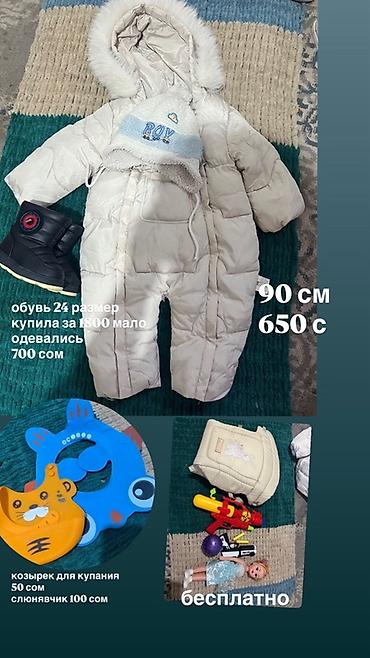 Детская зимняя одежда и обувь с 1года до 3лет!!! всего за 1000 сом!!! - Комбинезоны: • Тёплый коричневый трансформер с закрытыми ножками и варежками на липе, капюшон на подкладке с принтом, длин...
