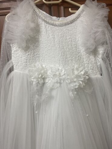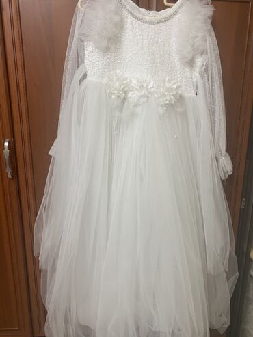 БелыйНарядное детское платье белого цвета.размер на 10-13 лет
